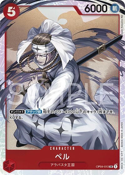 ペル 【SR】【赤】【OP04-013】 【コスト5】【5000】【カウンター0】【アタック時】アラバスタ王国