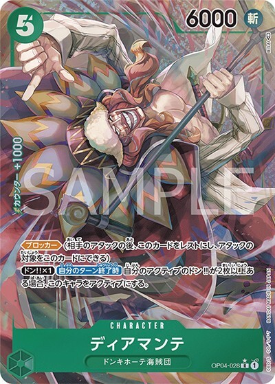 ディアマンテ 【R】【パラレル】【緑】【OP04-028】【コスト5】【6000】【カウンター1000】【ブロッカー】【自分のターン終了時】ドンキホーテ海賊団