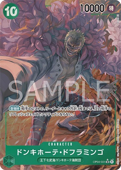 ドンキホーテ・ドフラミンゴ 【SR】【パラレル】【緑】【OP04-031】【コスト10】【10000】【カウンター1000】【登場時】王下七武海/ドンキホーテ海賊団