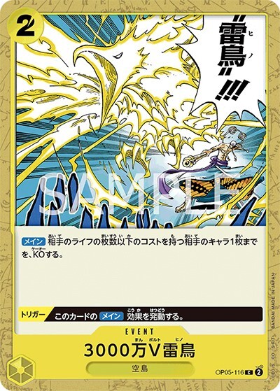 3000万V雷鳥 【C】【黄】【OP05-116】【コスト2】【イベント】【トリガー】【メイン】空島/ボルトヒノ