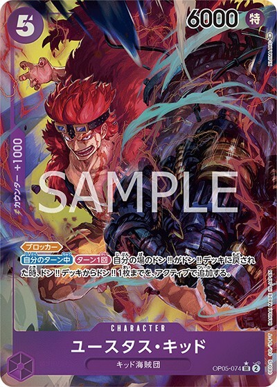 ユースタス・キッド 【SR】【パラレル】【紫】【OP05-074】【コスト5】【6000】【カウンター1000】【ブロッカー】【自分のターン中】【ターン1回】キッド海賊団