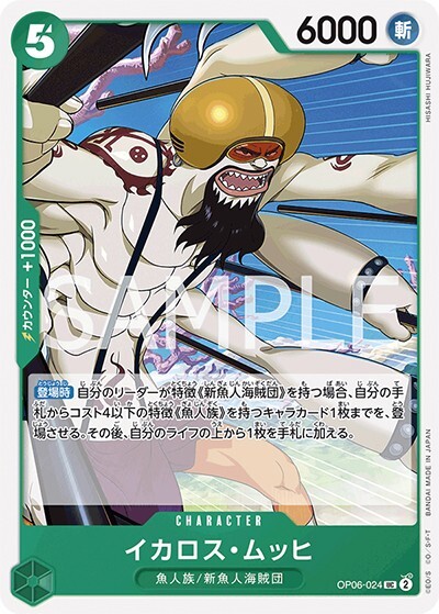 イカロス・ムッヒ 【UC】【緑】【OP06-024】【コスト5】【6000】【カウンター1000】【登場時】魚人族/新魚人海賊団