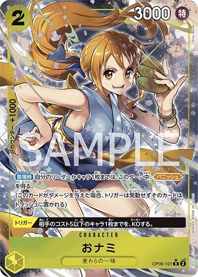 おナミ 【R】【パラレル】【黄】【OP06-101】【コスト2】【3000】【カウンター1000】【トリガー】【登場時】【バニッシュ】麦わらの一味