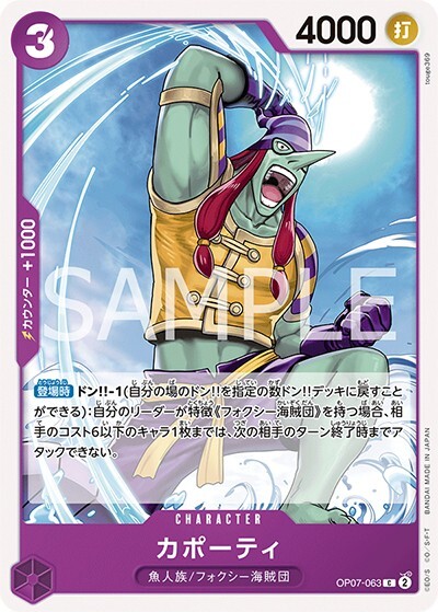 カポーティ 【C】【紫】【OP07-063】【コスト3】【4000】【カウンター1000】【登場時】魚人族/フォクシー海賊団