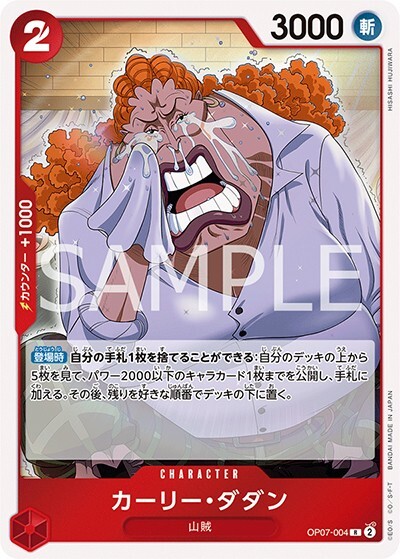 カーリー・ダダン 【R】【赤】【OP07-004】【コスト2】【3000】【カウンター1000】【登場時】山賊