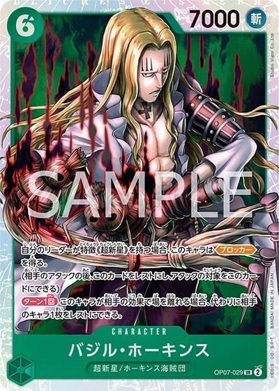 バジル・ホーキンス 【SR】【緑】【OP07-029】【コスト6】【7000】【カウンター0】【ターン1回】超新星/ホーキンス海賊団