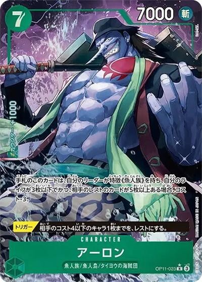 アーロン 【R】【パラレル】【緑】【OP11-023】【7000】【コスト7】【カウンター1000】【トリガー】魚人族/魚人島/タイヨウの海賊団