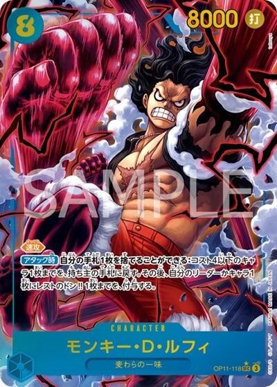 モンキー・D・ルフィ 【シークレット】【パラレル】【青】【OP11-118】【コスト8】【8000】【カウンター0】【速攻】【アタック時】麦わらの一味