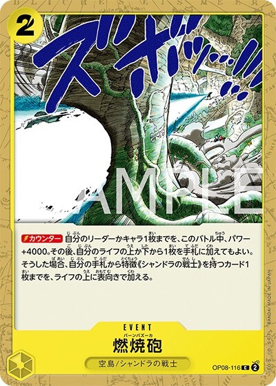 燃焼砲 【C】【黄】【OP08-116】バーンバズーカ【コスト2】【イベント】【カウンター】空島/シャンドラの戦士