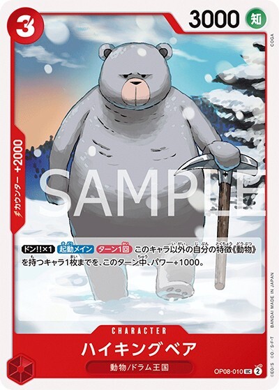 ハイキングベア 【UC】【赤】【OP08-010】【コスト3】【3000】【カウンター2000】【起動メイン】【ターン1回】動物/ドラム王国