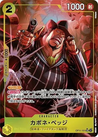 カポネ・ベッジ 【SR】【パラレル】【黄】【OP11-101】【コスト2】【1000】【カウンター1000】【ブロッカー】【ターン1回】超新星/ファイアタンク海賊団