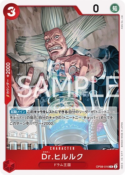Dr.ヒルルク 【R】【赤】【OP08-016】【コスト3】【0】【カウンター2000】【起動メイン】ドラム王国