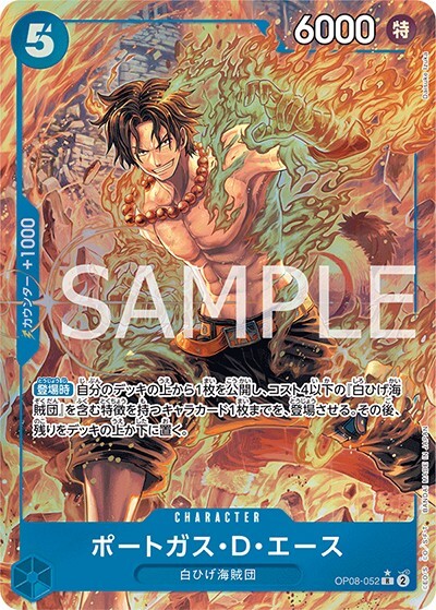 ポートガス・D・エース 【R】【パラレル】【青】【OP08-052】【コスト5】【6000】【カウンター1000】【登場時】白ひげ海賊団