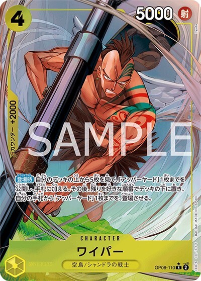 ワイパー 【R】【パラレル】【黄】【OP08-110】【コスト4】【5000】【カウンター2000】【登場時】空島/シャンドラの戦士