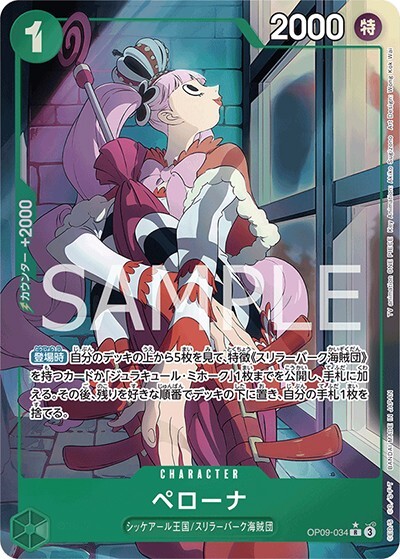 ペローナ 【R】【パラレル】【緑】【OP09-034】【コスト1】【2000】【カウンター2000】【登場時】シッケアール王国/スリラーバーク海賊団