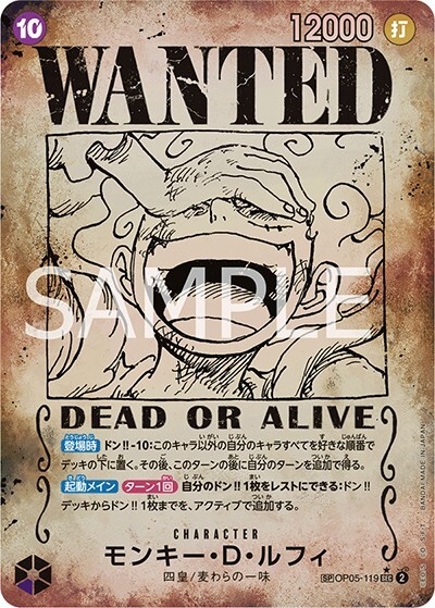 モンキー・D・ルフィ 【シークレット】【SP】【手配書】【パラレル】【紫】【OP05-119】【コスト10】【12000】【カウンター0】【登場時】【起動メイン】【ターン1回】四皇/麦わらの一味