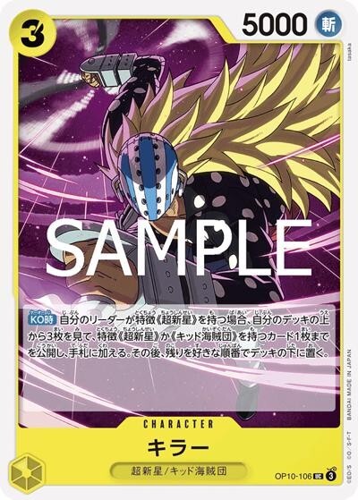 キラー 【UC】【黄】【OP10-106】【コスト3】【5000】【カウンター0】【KO時】超新星/キッド海賊団