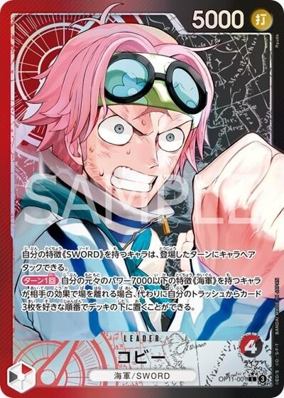 コビー 【リーダーパラレル】【赤】【黒】【OP11-001】【ライフ4】【リーダー】【5000】【ターン1回】海軍/SWORD