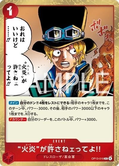 “火炎”が許さねェってよ!! 【R】【赤】【OP13-019】【コスト1】【イベント】【メイン】【カウンター】ドレスローザ/革命軍