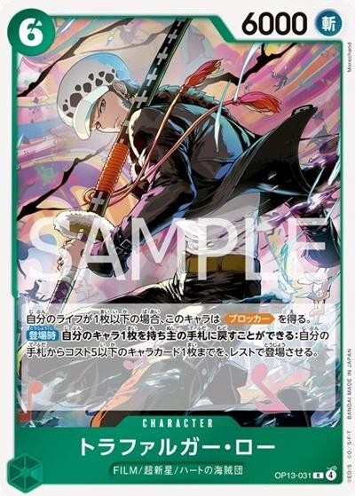 トラファルガー・ロー 【R】【緑】【OP13-031】【コスト6】【6000】【カウンター0】【ブロッカー】【登場時】FILM/超新星/ハートの海賊団