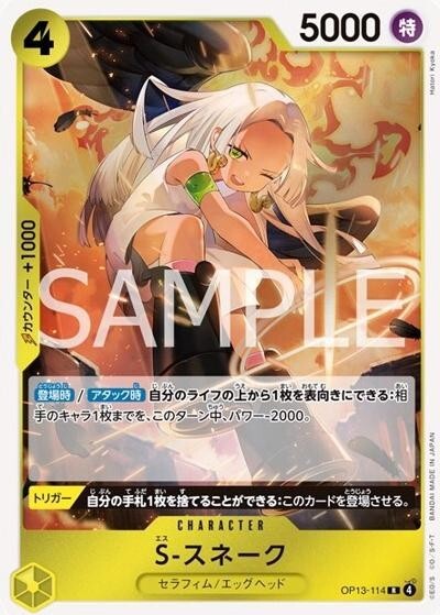 S-スネーク 【R】【黄】【OP13-114】【コスト4】【5000】【カウンター1000】【アタック時】【登場時】セラフィム/エッグヘッド