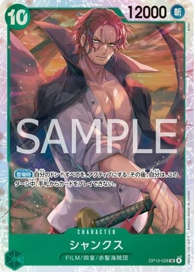 シャンクス 【SR】【緑】【OP13-028】【コスト10】【12000】【カウンター0】【登場時】FILM/四皇/赤髪海賊団