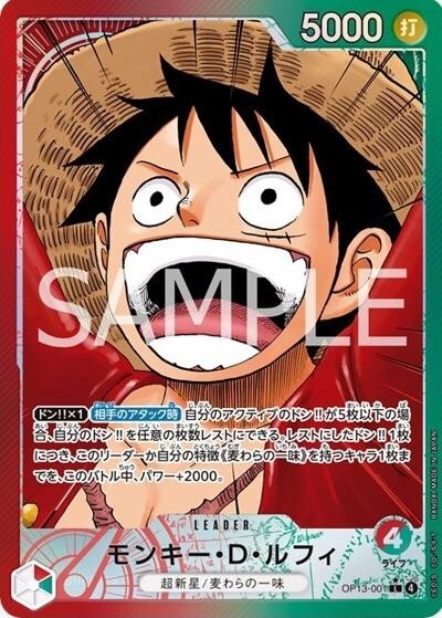 モンキー・D・ルフィ 【リーダーパラレル】【赤緑】【OP13-001】【リーダー】【ライフ4】【5000】超新星/麦わらの一味