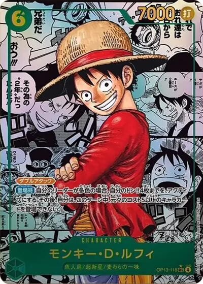 モンキー・D・ルフィ 【シークレット】【スーパーパラレル】【緑】【OP13-118】【コスト6】【7000】【カウンター0】【ダブルアタック】【登場時】魚人島/超新星/麦わらの一味 [57431899]