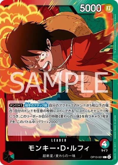 モンキー・D・ルフィ 【リーダー】【赤緑】【OP13-001】【ライフ4】【5000】超新星/麦わらの一味
