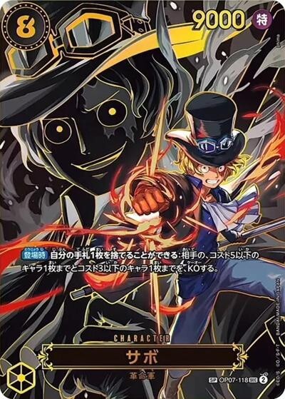 サボ 【シークレット】【SP】【パラレル】【黒】【OP07-118】【コスト8】【9000】【カウンター0】【登場時】革命軍