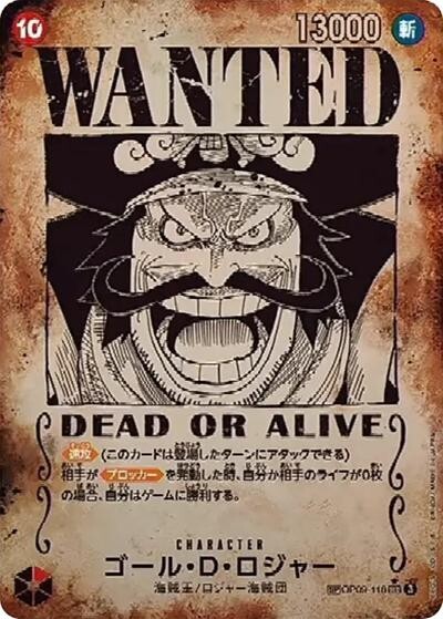 ゴール・D・ロジャー 【シークレット】【SP】【手配書】【赤】【OP09-118】【コスト10】【13000】【カウンター0】【速攻】海賊王/ロジャー海賊団