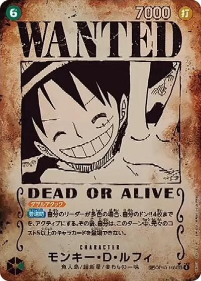 モンキー・D・ルフィ 【シークレット】【SP】【手配書】【緑】【OP13-118】【コスト6】【7000】【カウンター0】【ダブルアタック】【登場時】魚人島/超新星/麦わらの一味