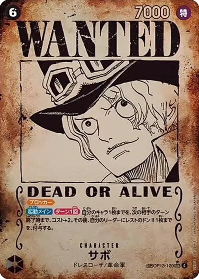 サボ 【シークレット】【SP】【手配書】【黒】【OP13-120】【コスト6】【7000】【カウンター0】【起動メイン】【ターン1回】【ブロッカー】ドレスローザ/革命軍 [57431872]