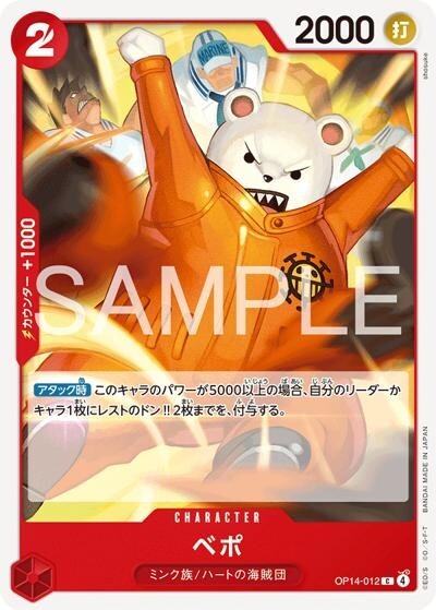 ベポ 【C】【赤】【OP14-012】【コスト2】【2000】【カウンター1000】【アタック時】ミンク族/ハートの海賊団
