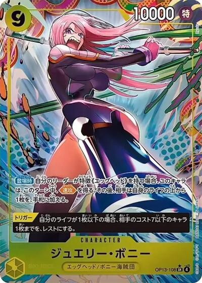 ジュエリー・ボニー 【SR】【パラレル】【黄】【OP13-108】【コスト9】【10000】【カウンター0】【トリガー】【登場時】エッグヘッド/ボニー海賊団