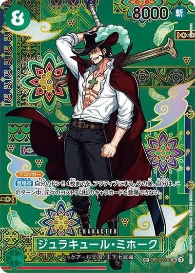 ジュラキュール・ミホーク 【SP】【SR】【パラレル】【緑】【OP12-030】【コスト8】【8000】【カウンター0】【ブロッカー】【登場時】シッケアール王国/王下七武海