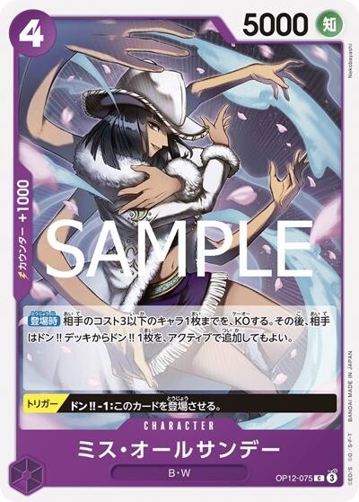 ミス・オールサンデー 【C】【紫】【OP12-075】【コスト4】【5000】【カウンター1000】【トリガー】【登場時】B・W