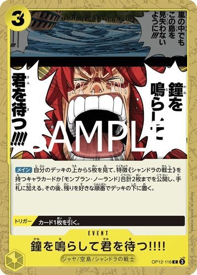 鐘を鳴らして君を待つ!!!! 【C】【黄】【OP12-116】【コスト3】【イベント】【トリガー】【メイン】ジャヤ/空島/シャンドラの戦士