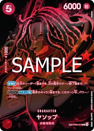 ヤソップ 【R】【SP】【パラレル】【赤】【OP09-013】【コスト5】【6000】【カウンター1000】【アタック時】【登場時】赤髪海賊団