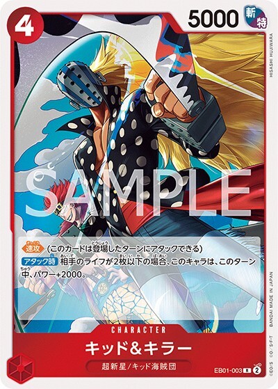 キッド&キラー 【R】【赤】【EB01-003】【コスト4】【5000】【カウンター0】【速攻】【アタック時】超新星/キッド海賊団