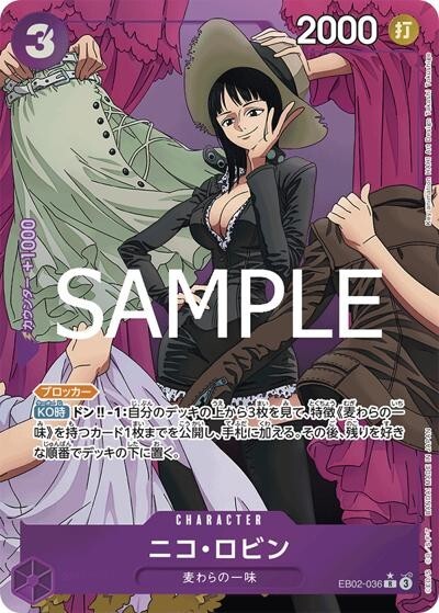 ニコ・ロビン 【R】【パラレル】【紫】【EB02-036】【コスト3】【2000】【カウンター1000】【ブロッカー】【KO時】麦わらの一味
