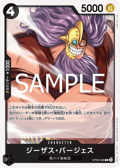 ジーザス・バージェス 【R】【再録ノーマル】【黒】【OP09-086】【コスト4】【5000】【カウンター1000】【スタートデッキ】【ST27】 黒ひげ海賊団