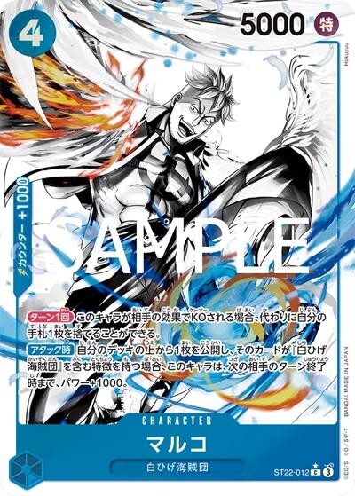 マルコ 【C】【パラレル】【スタートデッキ エース&ニューゲート】【青】【ST22-012】【コスト4】【5000】【カウンター1000】【アタック時】【ターン1回】【スタートデッキ】【ST22】 白ひげ海賊団 [57434587]