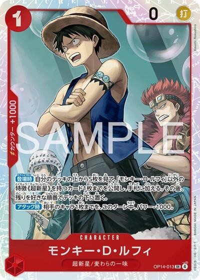 モンキー・D・ルフィ 【SR】【赤】【OP14-013】【コスト1】【0】【カウンター1000】【アタック時】【登場時】超新星/麦わらの一味