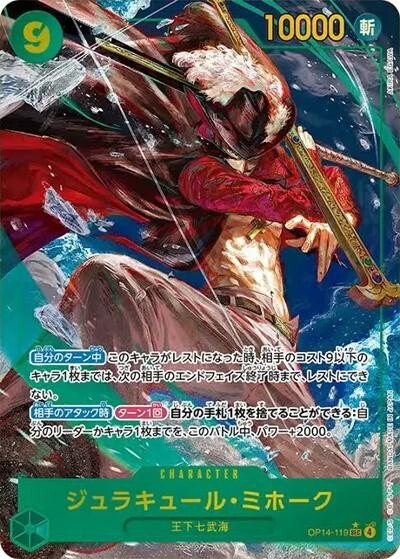 ジュラキュール・ミホーク 【シークレット】【パラレル】【緑】【OP14-119】【コスト9】【カウンター0】【自分のターン中】【相手のアタック時】王下七武海