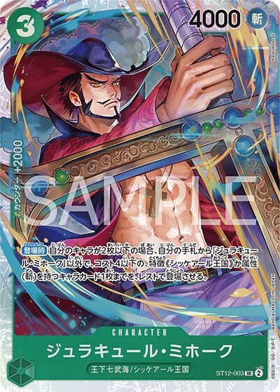 ジュラキュール・ミホーク 【SR】【スタートデッキ ゾロ&サンジ】【緑】【ST12-003】【コスト3】【4000】【カウンター2000】【登場時】王下七武海/シッケアール王国