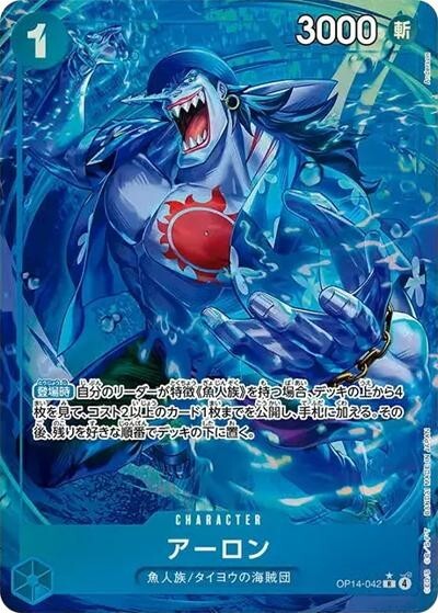 アーロン 【R】【パラレル】【青】【OP14-042】【コスト1】【3000】【カウンター0】【登場時】魚人族/タイヨウの海賊団