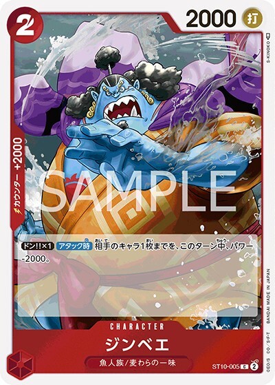 ジンベエ 【C】【アルティメットデッキ 三船長 集結】【赤】【ST10-005】【コスト2】【2000】【カウンター2000】【アタック時】麦わらの一味/魚人族 [57441017]