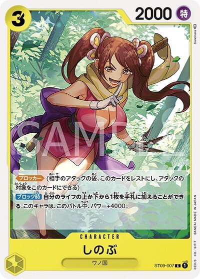 しのぶ 【C】【スタートデッキ Side ヤマト】【黄】【ST09-007】【コスト3】【2000】【カウンター0】【ブロッカー】【ブロック時】ワノ国