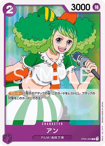 アン 【C】【スタートデッキ ONE PIECE FILM edition】【紫】【ST05-003】【コスト2】【3000】【カウンター0】【ブロッカー】FILM/海賊万博